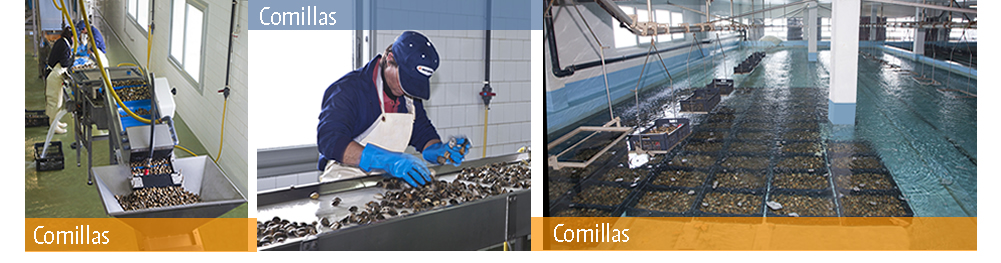 Depuradora de Moluscos en un edificio de tres plantas con aproximadamente 1.000m2 por planta, en las que se ubican las piscinas de depuración.
